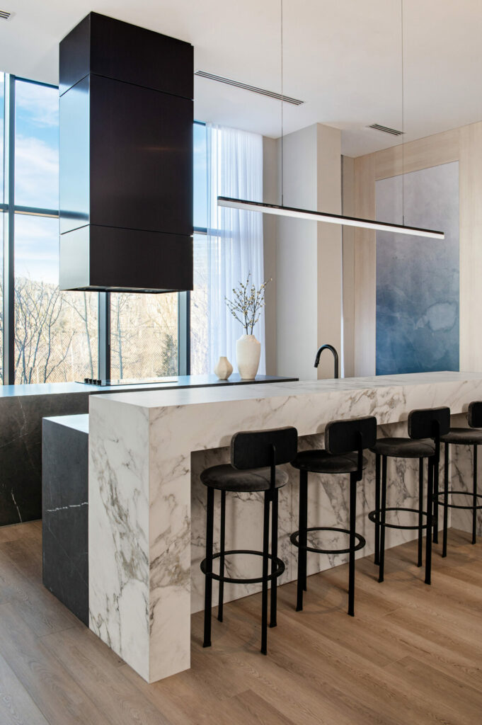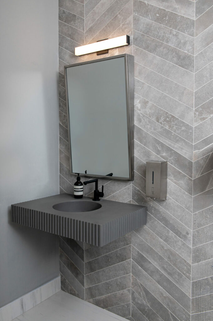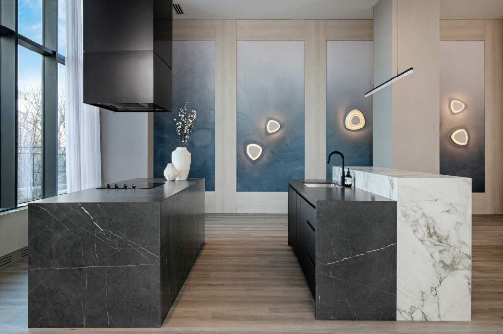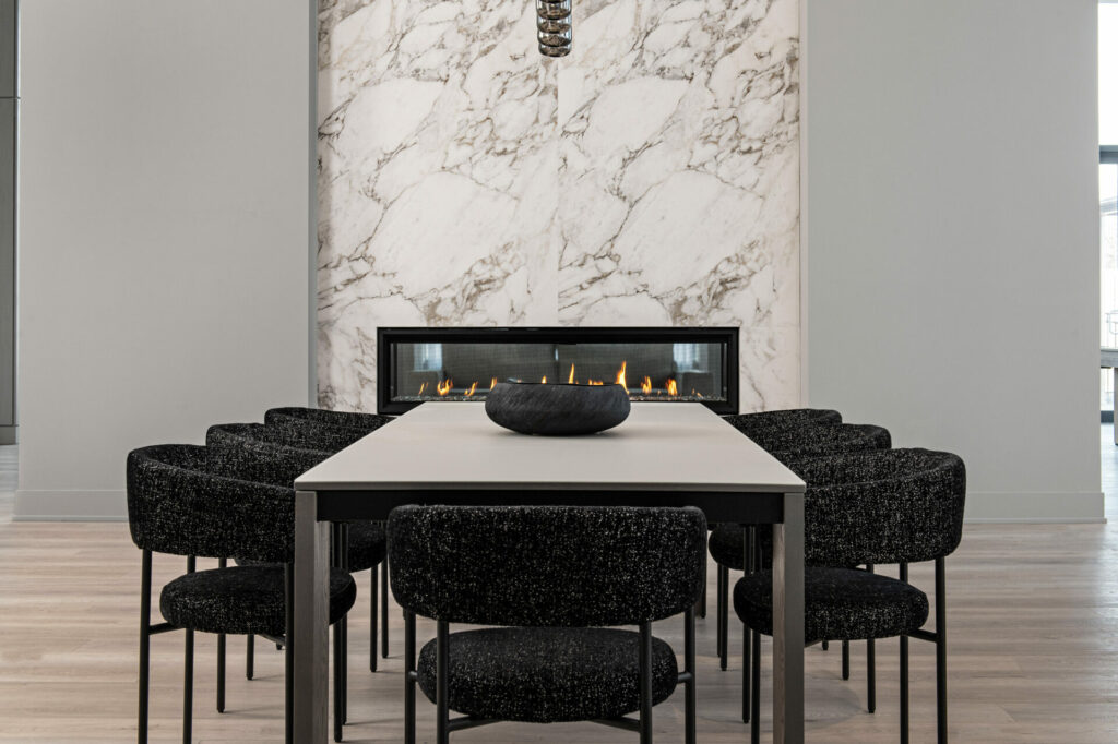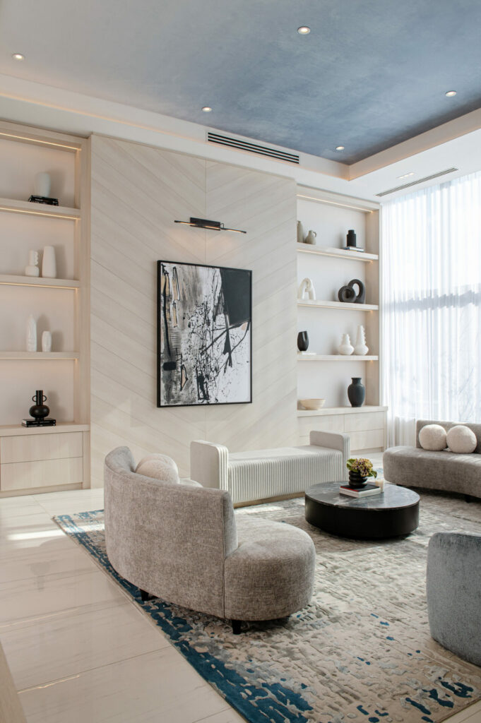 Rise at Stride Condominium, design of the lobby, amenity spaces & corridors by MND. inspired by the waterfront views, we didn’t shy away from colour and drama in this port credit mid-rise.