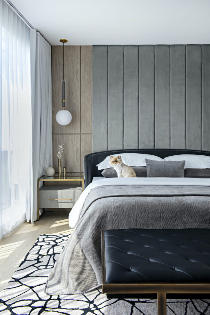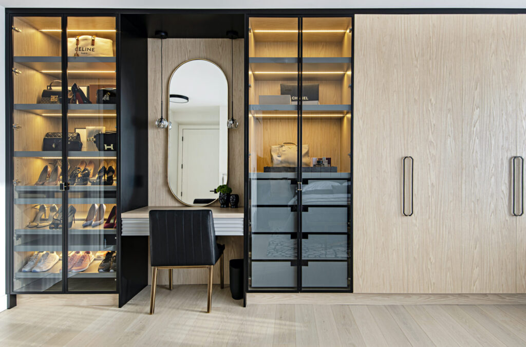 A once builder spec condo completely gutted and transformed into a luxurious, personality filled suite. The two bedroom, two bathroom condominium was transformed into a one bedroom pied-à-terre with lots of custom millwork and fine finishes. The young homeowner wanted the space to unapologetically reflect her own personal taste and style, Mndesign worked closely with the homeowner to interpret her goals and dreams into reality.